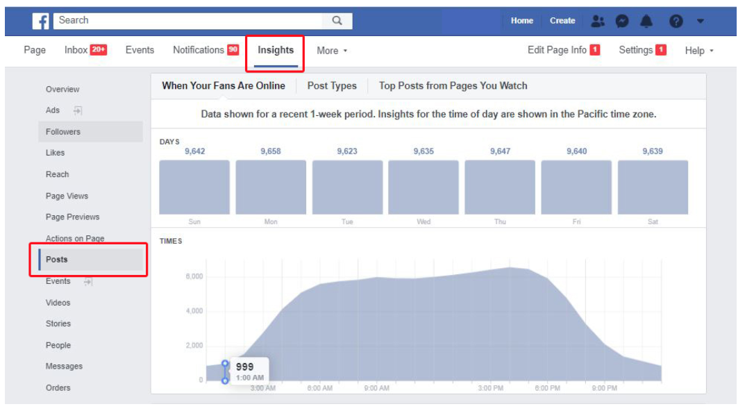 Ez elengedhetetlen annak érdekében, hogy pontosabb beállításokat használj az ütemezésnél. Hiszen honnan is tudhatnád, hogy mit állíts be, ha nem ismered a közönséged közösségi média platformokon eltöltött aktív időtartamát? Pontosan ezért fontos az elemzés. Az oldalad tetején válaszd ki az „elemzés” menüpontot, majd a bal oldali oszlopban a „bejegyzés”-t. Itt 3 fület láthatsz, ezek közül az elsőre lesz szükséged: „Amikor a követőid online vannak”. Itt órára lebontva fogod látni, hogy mikor voltak jelen a felhasználók.